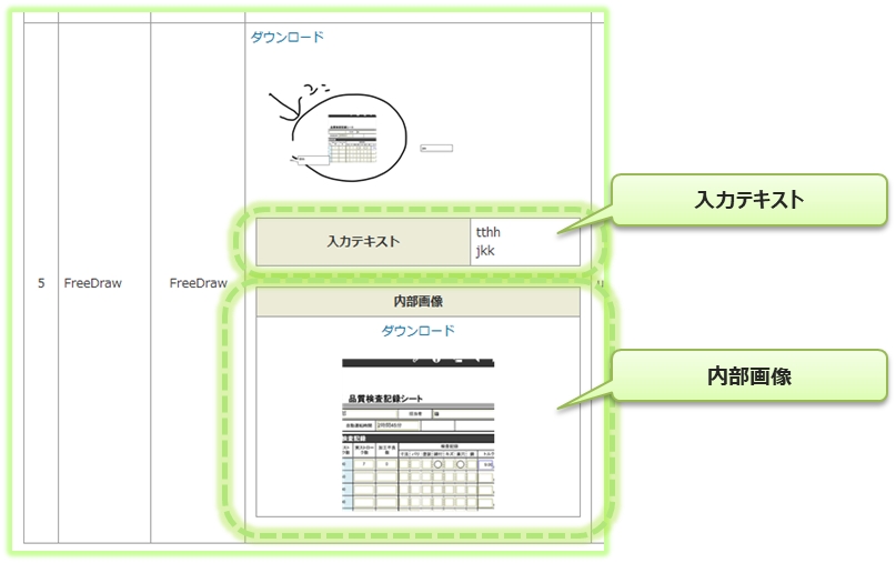 FreeDrawクラスターの入力テキストと、内部画像入力テキスト、内部画像があれば、表示します。