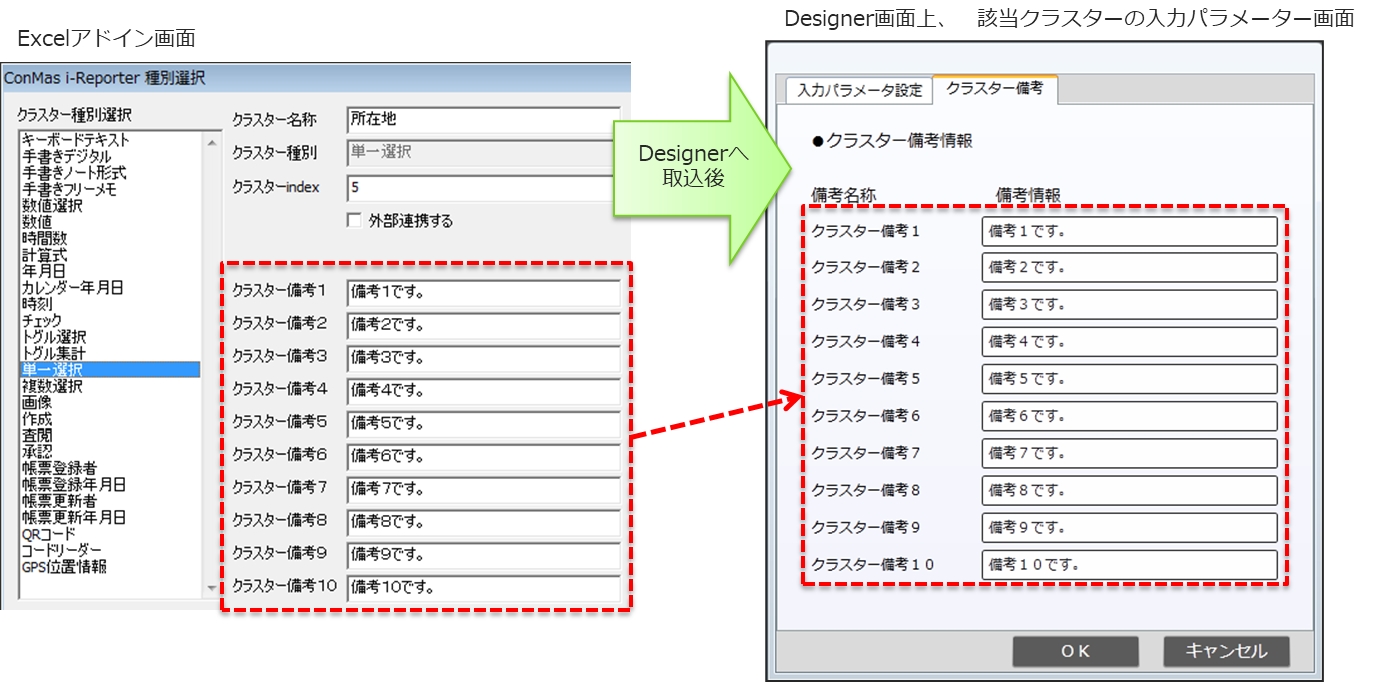 Designerへ取り込み後に各クラスターの入力パラメーター画面にて参照、編集ができます。