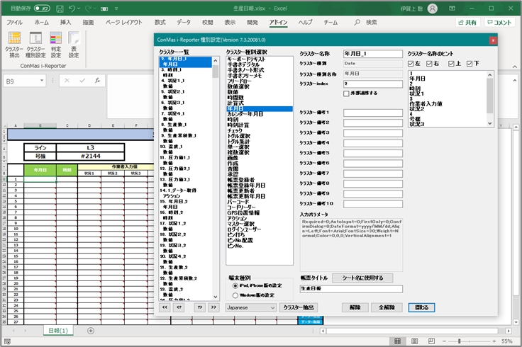 EXCELファイル上でAdd-inを利用して1シート分のクラスター種別設定を行います。