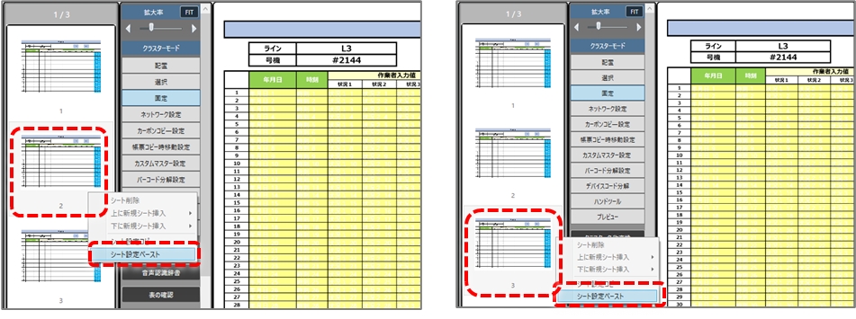 構成が同一のシート同士のみシート設定コピー/ペーストが可能です