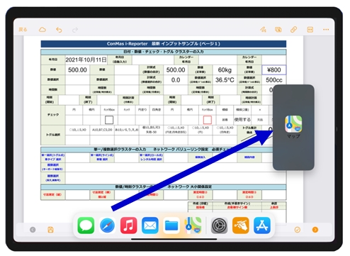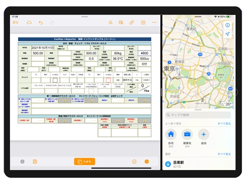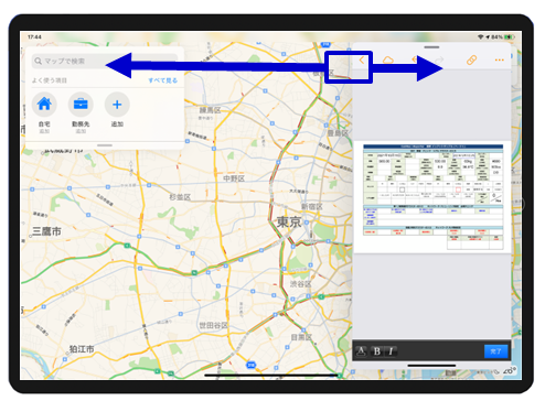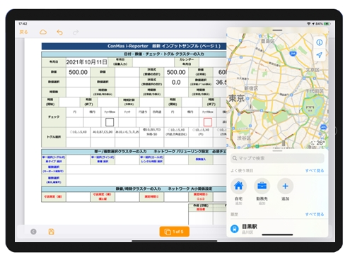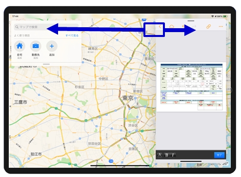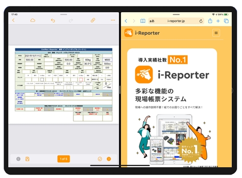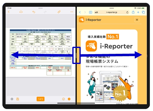 同じ画面内でi-Reporterアプリを操作しながら、他アプリの図面や、Webサイトを参照することができます。