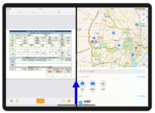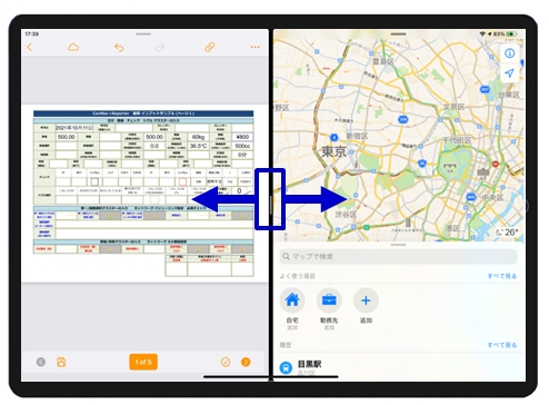 iPadの画面が分割され、2つのアプリを同時に表示・操作することができます。