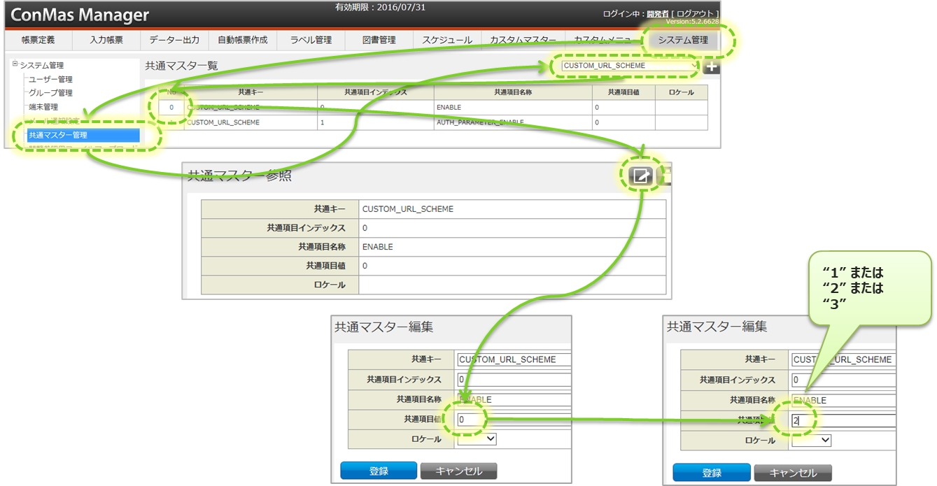 本機能を使用するには、共通マスターで本機能の設定を有効にします。