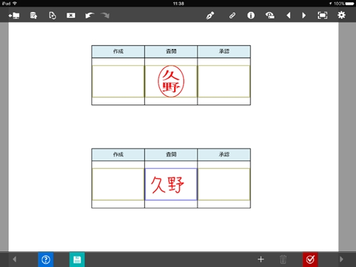 主に上長などによる確認の印影、サインを記入するために使用します。