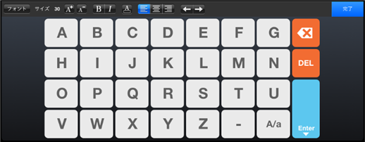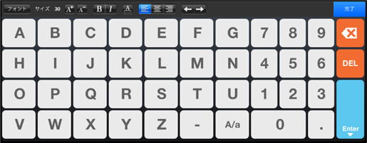 【英字簡易キーボード】 英字のみ入力可能な簡易キーボードを使用します。