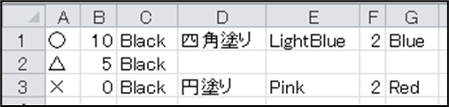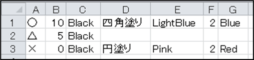 【円塗り】【四角塗り】の塗り色を指定します。色を指定しない場合は透過となります。