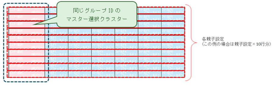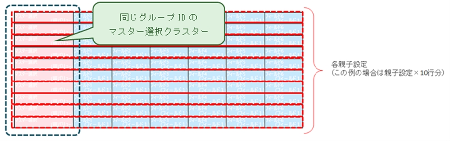 同じグループID同士のマスター選択クラスターは複数選択モードとして動作します。