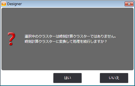 選択していたクラスターが時刻計算クラスターで なかった場合、そのクラスターを時刻計算クラス ターに変換するか、確認のメッセージが表示され ます。