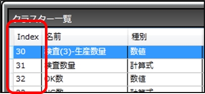 選択しているクラスターのIndexの値を参照し、昇順で1から順に採番します。