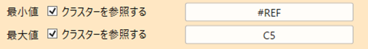 最小値、最大値、正常最小値、正常最大値のクラスター参照の設定方法