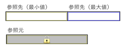 最小値、最大値をクラスター参照設定した場合、先に参照先の各クラスターへ値を入力する必要があります。参照先のクラスターが未入力の場合、参照元のクラスターは下記のように鍵マークが表示され入力が不可となります。