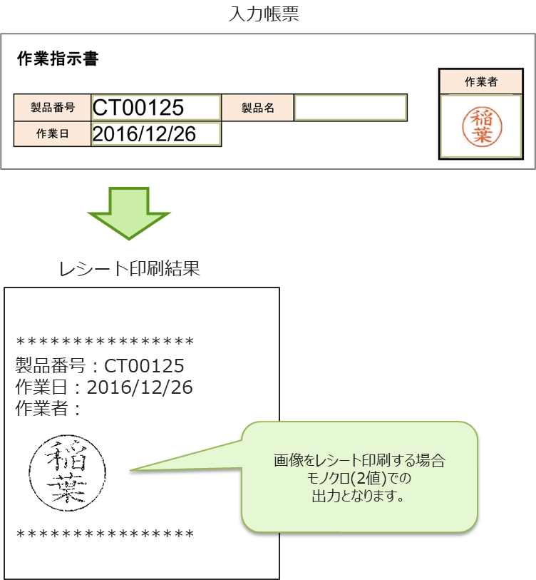 i-Reporterアプリで記入した帳票データの一部を、そのままアプリ上からレシート用紙に印刷することができる機能です。