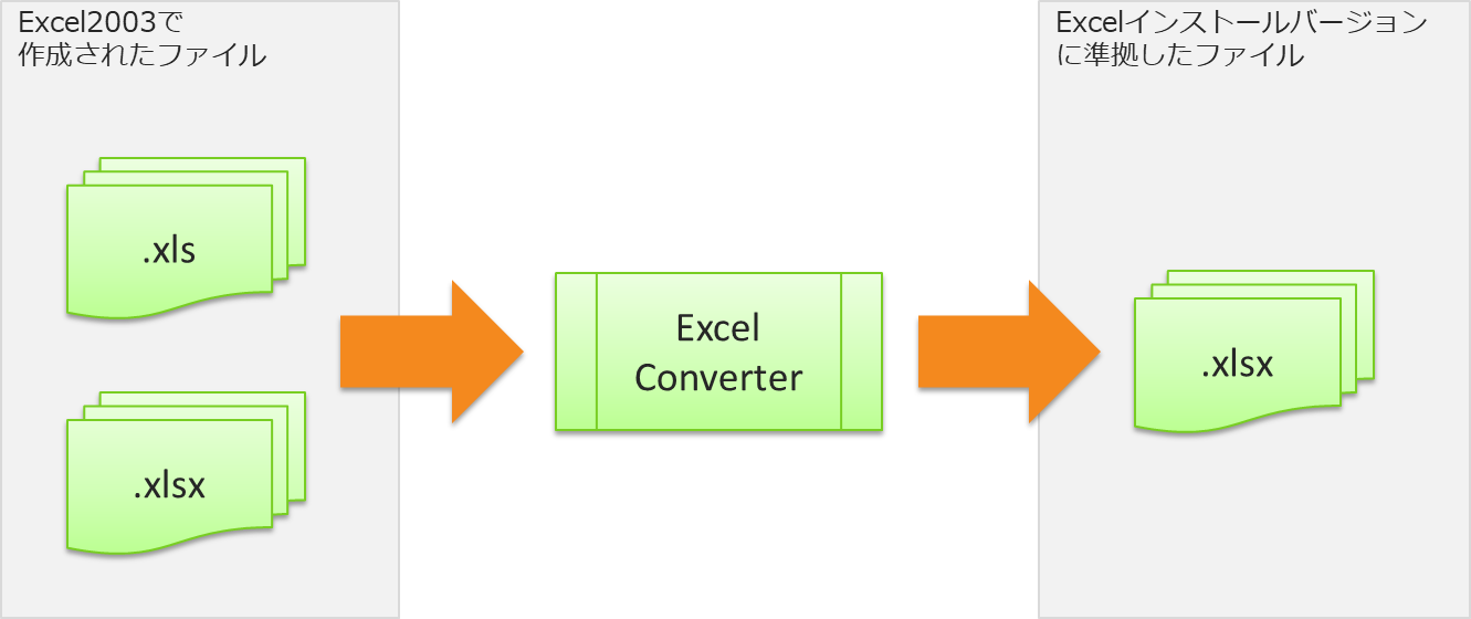 Excel2003で作成されたファイルを取り込む場合、Excel Converter を利用することで、取り込み時の問題を軽減した .xlsx 形式に変換することができます。 Excel Converter の操作については「Excel Converter 操作説明書」をご参照ください。