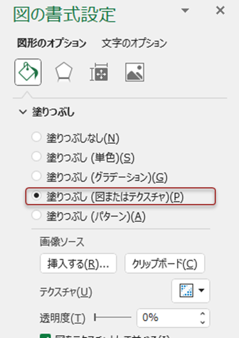 「塗りつぶし(図またはテクスチャ)」を設定している図形