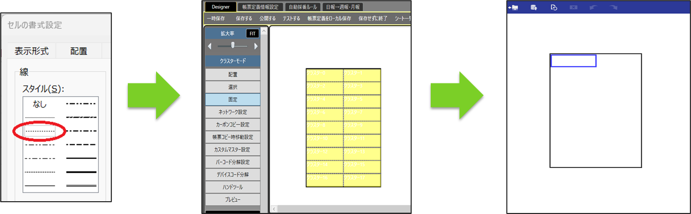i-Reporterアプリ上で罫線が表示されない場合があります。 罫線の「破線」は、別の罫線へ置き換えてご利用ください。