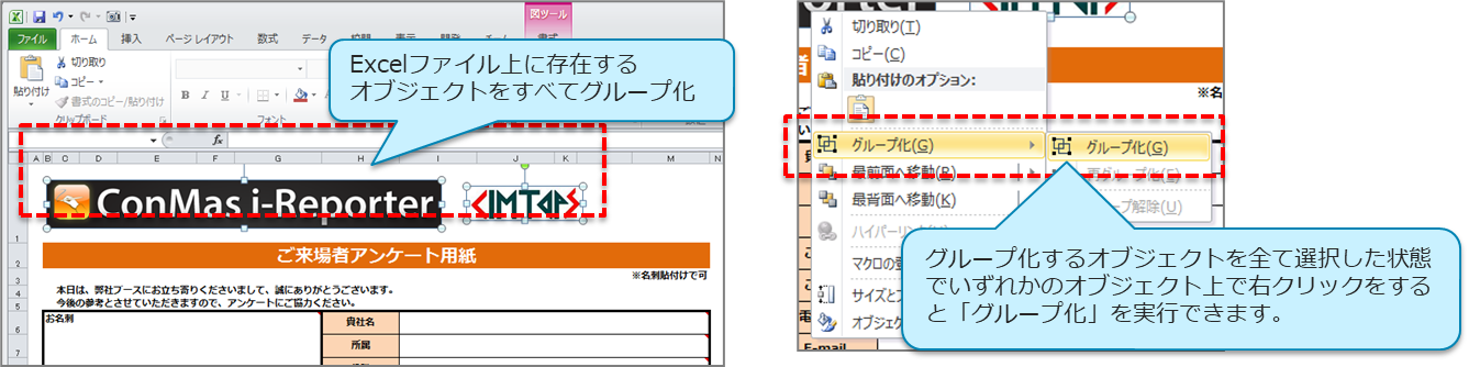 EXCEL取込後に情報が失われます。図に変換して配置してください。