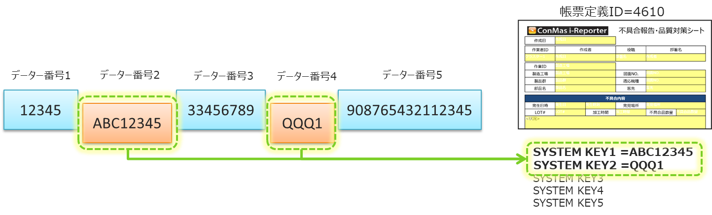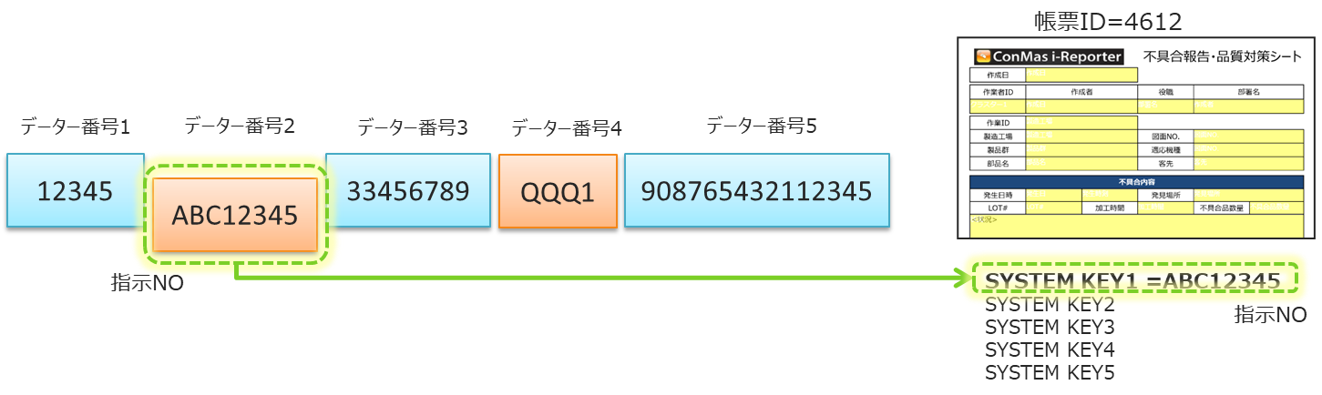 データー番号2=ABC12345=指示NO. → SYSTEM KEY1 =ABC12345