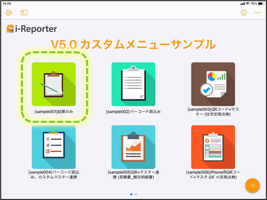 カスタムメニュー機能を使用すれば、独自の業務メニューアイコンをタップするだけで、その業務に応じた帳票を起動することが可能です。