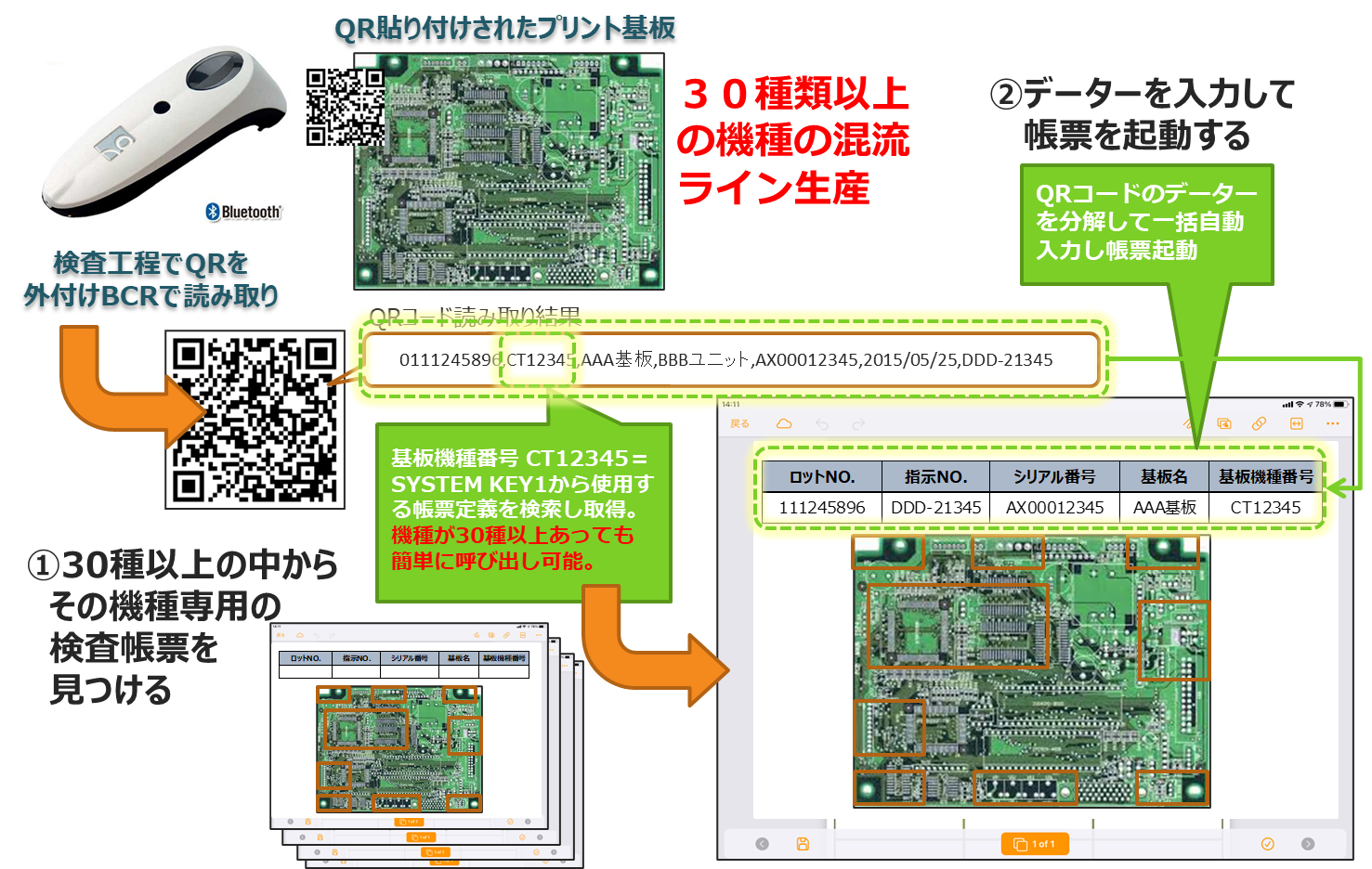 デバイスが読み取るコードの一部から帳票を見つけて起動