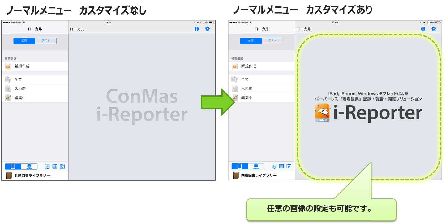 i-Reporter 上のノーマルメニューをカスタマイズできます。 (ノーマルメニュー : 従来の i-Reporter 起動時に表示されていた画面のこと)