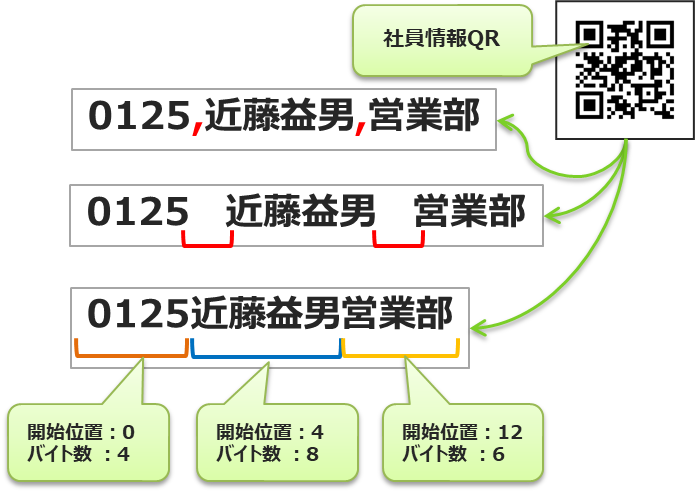 • バイト 読み取ったデバイスコードを「バイト区切り」で分解します。