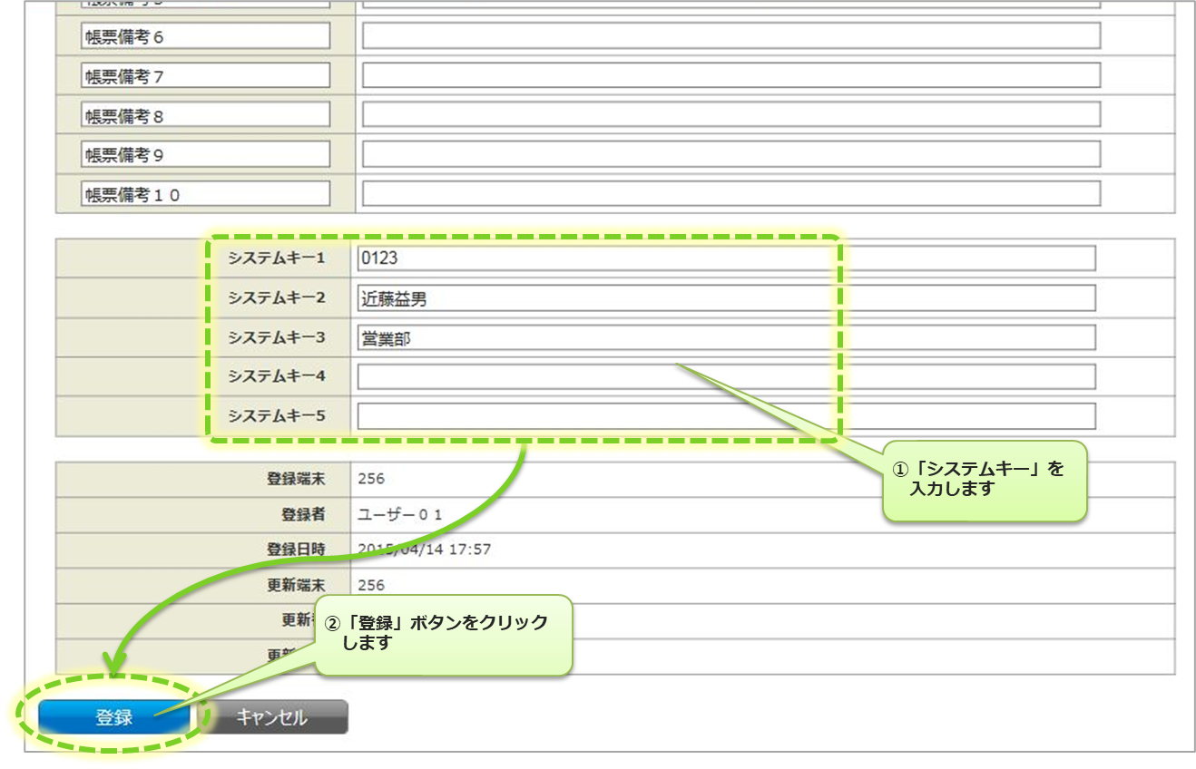 システムキーは、帳票定義、入力帳票に設定します。 詳細は、「帳票定義、入力帳票のシステムキーの設定」 をご参照ください。