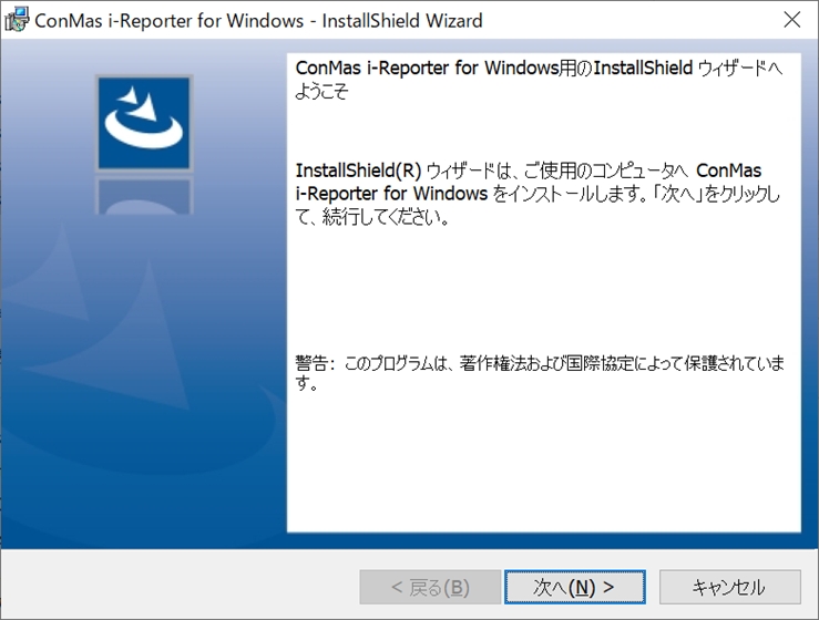 ダウンロードしたZIPファイル(ConMasIReporterSetup.X.X.XXXXX.zip)を展開します。 展開したフォルダ内のEXEファイル(ConMasIReporterSetup.X.X.XXXXX.exe)を実行し、インストーラーを起動します。 インストーラーの画面に従って、インストールを行います。