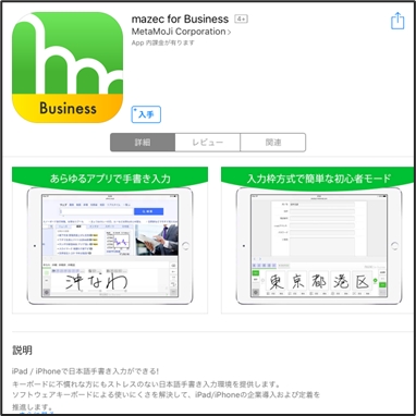 「mazec for Business」を i-Reporter をお使いの iOS 端末にインストールすると、OS 標準のキーボードに代わって、手書き入力が利用できます。