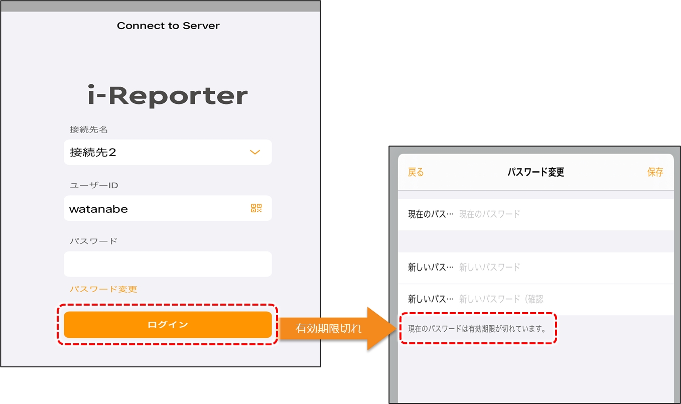 ログイン時にパスワードの有効期限が切れていた場合にも、「パスワード変更」画面が表示されます。
