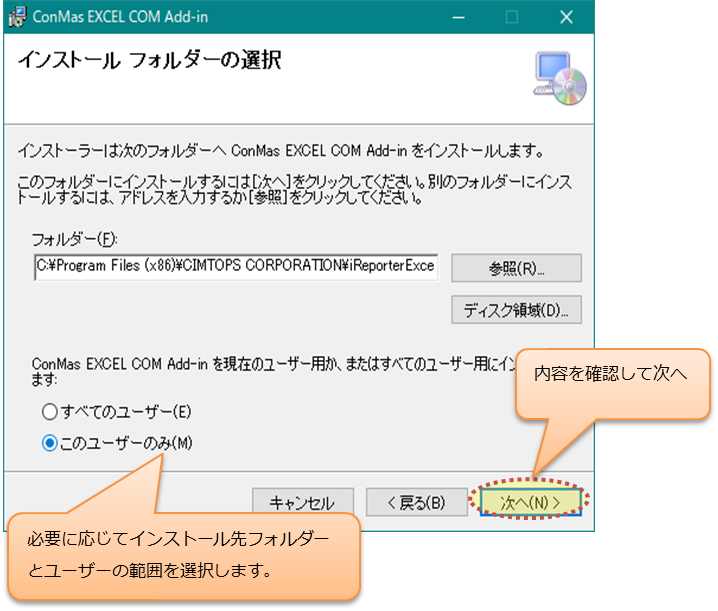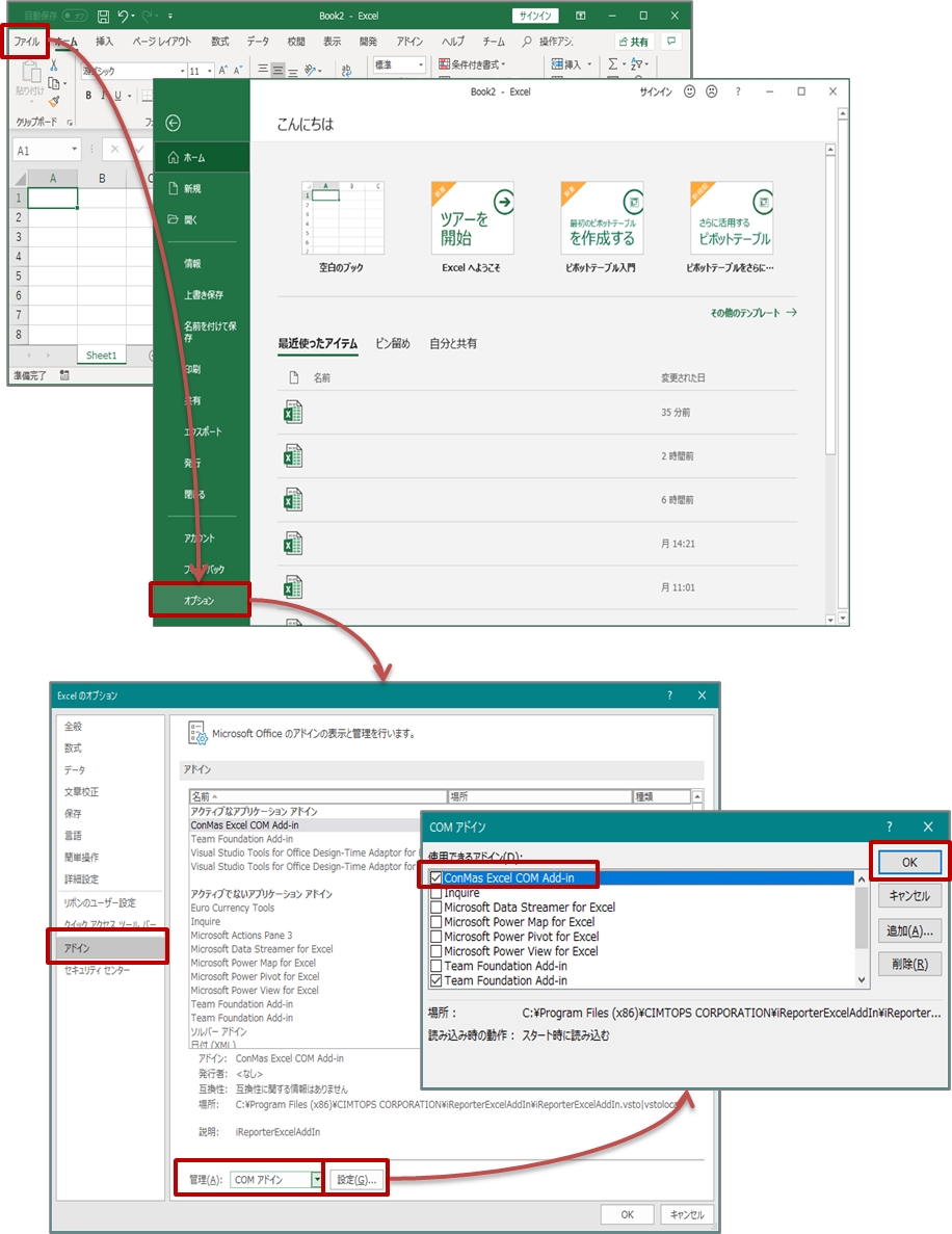 ConMas i-Reporter COM Add-in Ver.6.3以上 のインストール