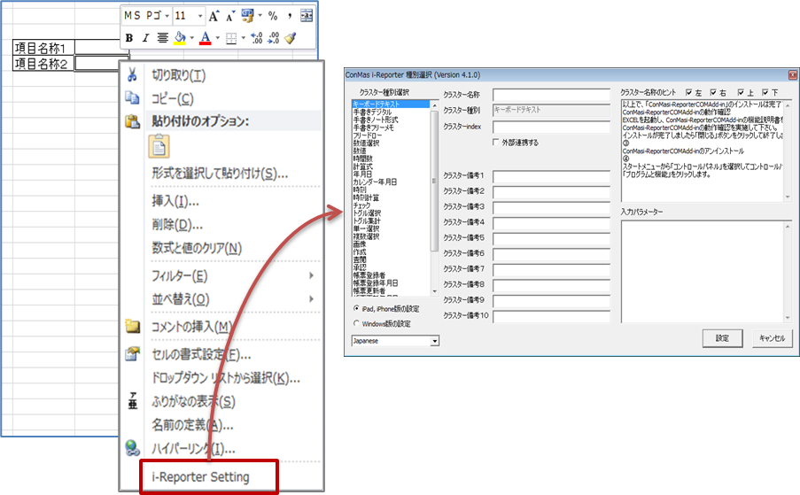 ConMas i-Reporter COM Add-in Ver.6.3以上