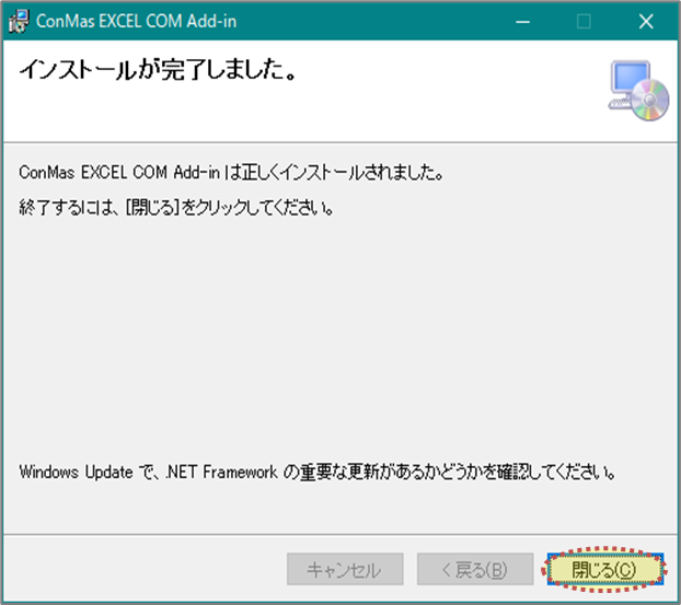 以上で、ConMas i-Reporter COM Add-in Ver.6.0以前 のインストルは完了です。