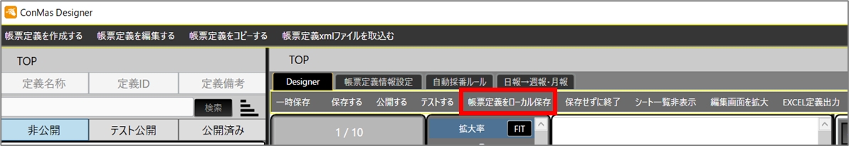「帳票定義をローカル保存」 をクリックし、xmlファイルを出力します。