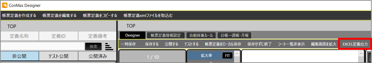 帳票定義Excelファイルの出力方法