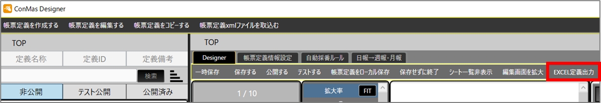ConMas Designerで、該当の帳票定義を開きます。