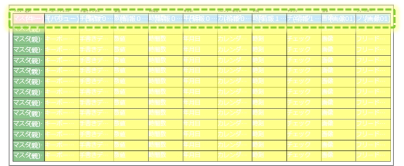 一列分のカスタムマスターの親子設定をこれまでの手順通りに設定します。