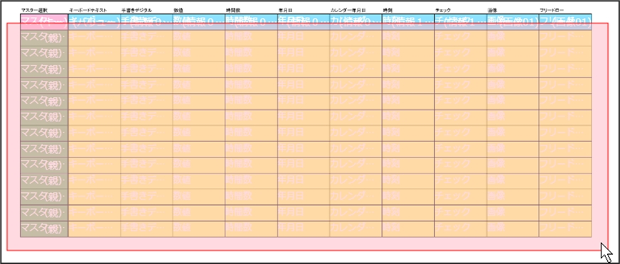 表形式の帳票など、帳票レイアウトによってはカスタムマスターの親子関係を表の行数分、繰り返し設定しなければならない場合があります。 この場合、カスタムマスター設定モード中にカスタムマスターの親子設定をコピー&ペーストできます。