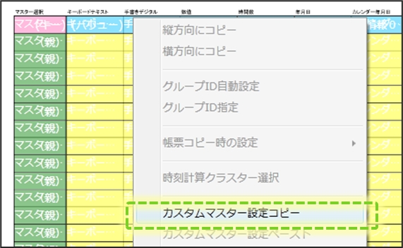 右クリックメニューから「カスタムマスター設定コピー」を実行します。