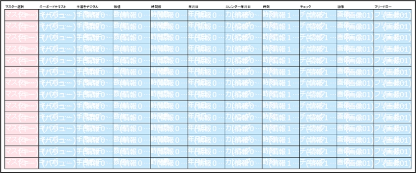 ConMas Designerでは、ConMas Managerで予め登録しておいたカスタムマスター情報を、帳票定義内の「マスター選択」という種別のクラスターへ割り当てていきます。 「マスター選択」はカスタムマスター専用のクラスター種別となります。
