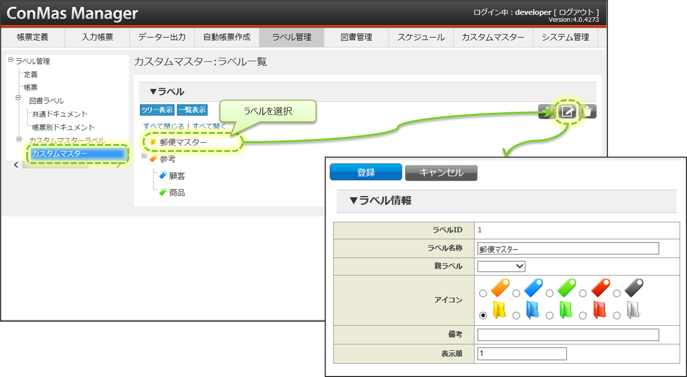 カスタムマスター用ラベルの編集