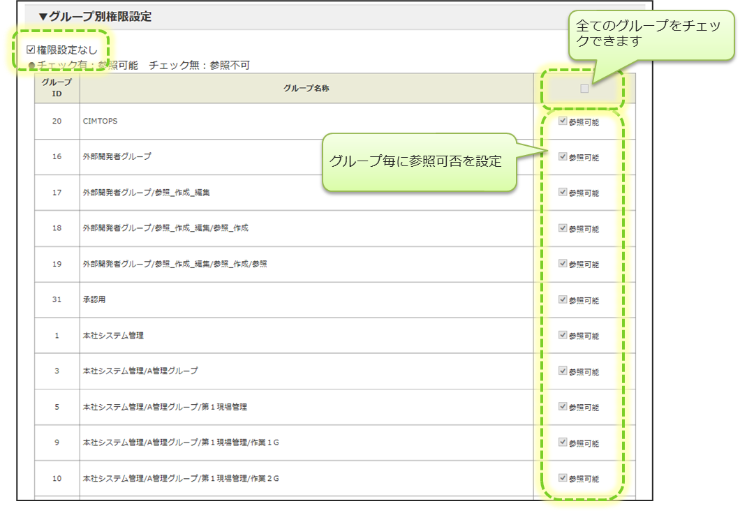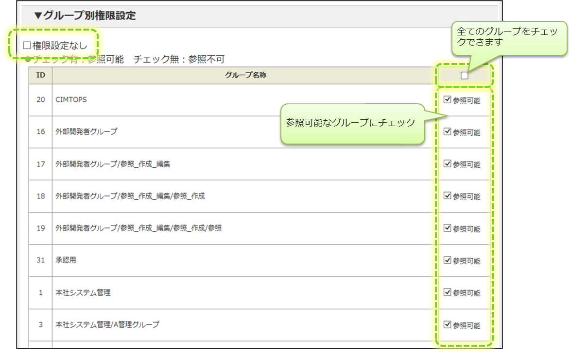 カスタムマスターの参照権限設定