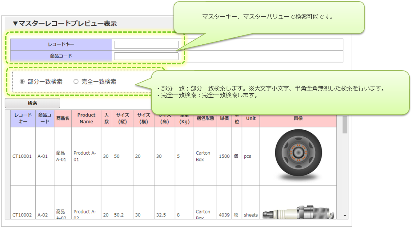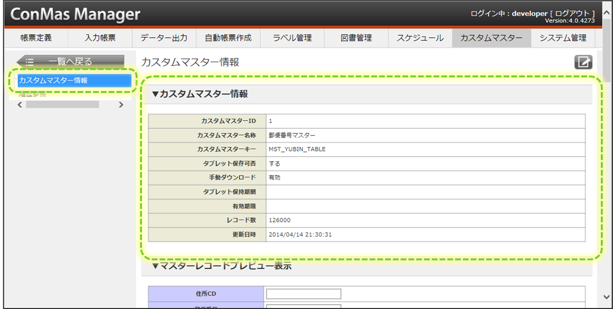 カスタムマスターのレコードを確認する