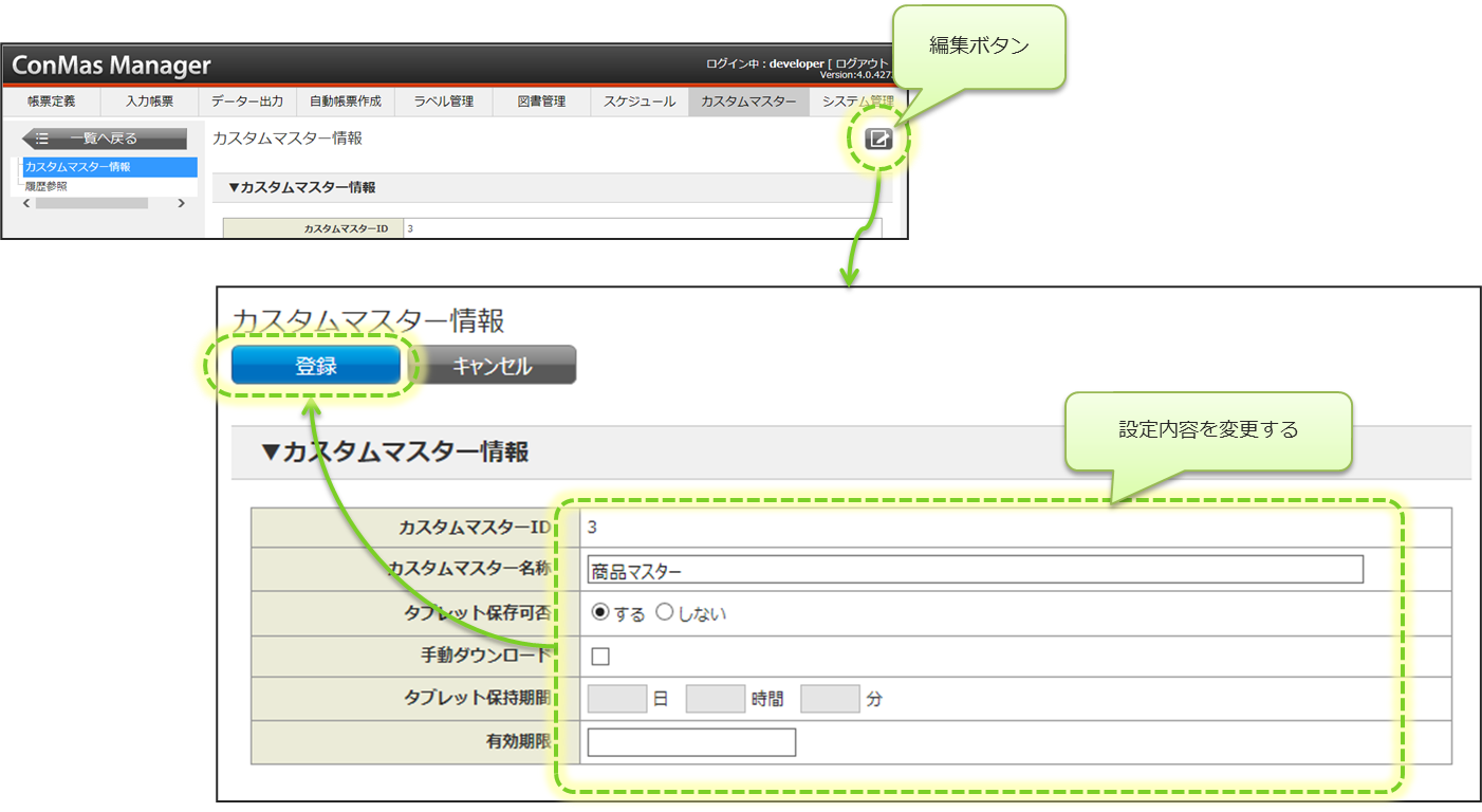 カスタムマスターの設定内容を変更する