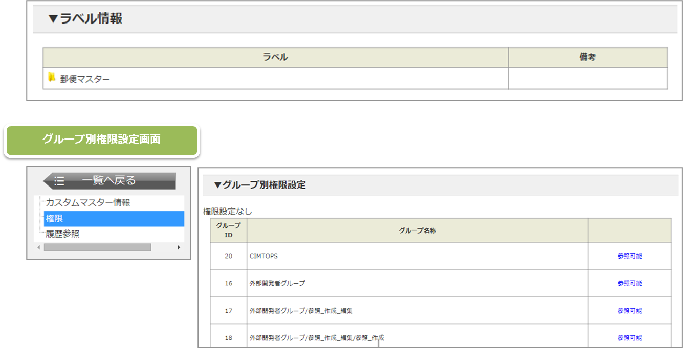 カスタムマスター用ラベルの参照権限設定