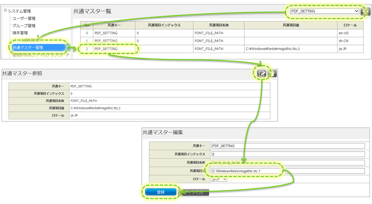 設定は、ConMas Managerの「システム管理」 > 「共通マスター管理」にて行います。