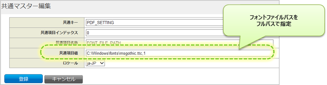 ConMas Managerでダウンロードする入力帳票のPDF、自動出力PDFに書き込むテキストのフォントファイルを、サーバー内のフォントファイルをフルパス指定することで変更できます。