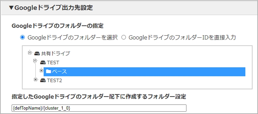 指定したGoogleドライブのフォルダー TEST\ベース