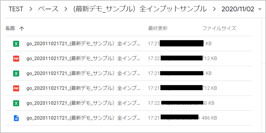 指定したフォルダー配下に生成したフォルダー →(最新デモ_サンプル)全インプットサンプル =定義名称 → 2020/11/02 =日付クラスターの年月日値