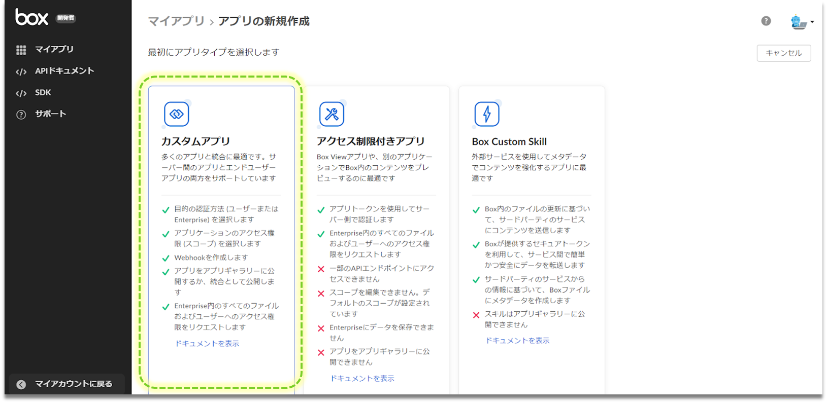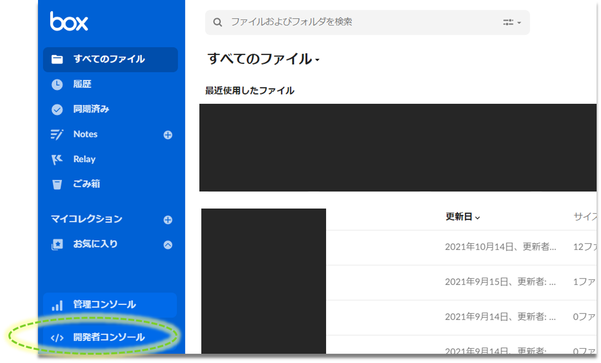 Webブラウザで Boxにログインし、「開発者コンソール」にアクセスします。