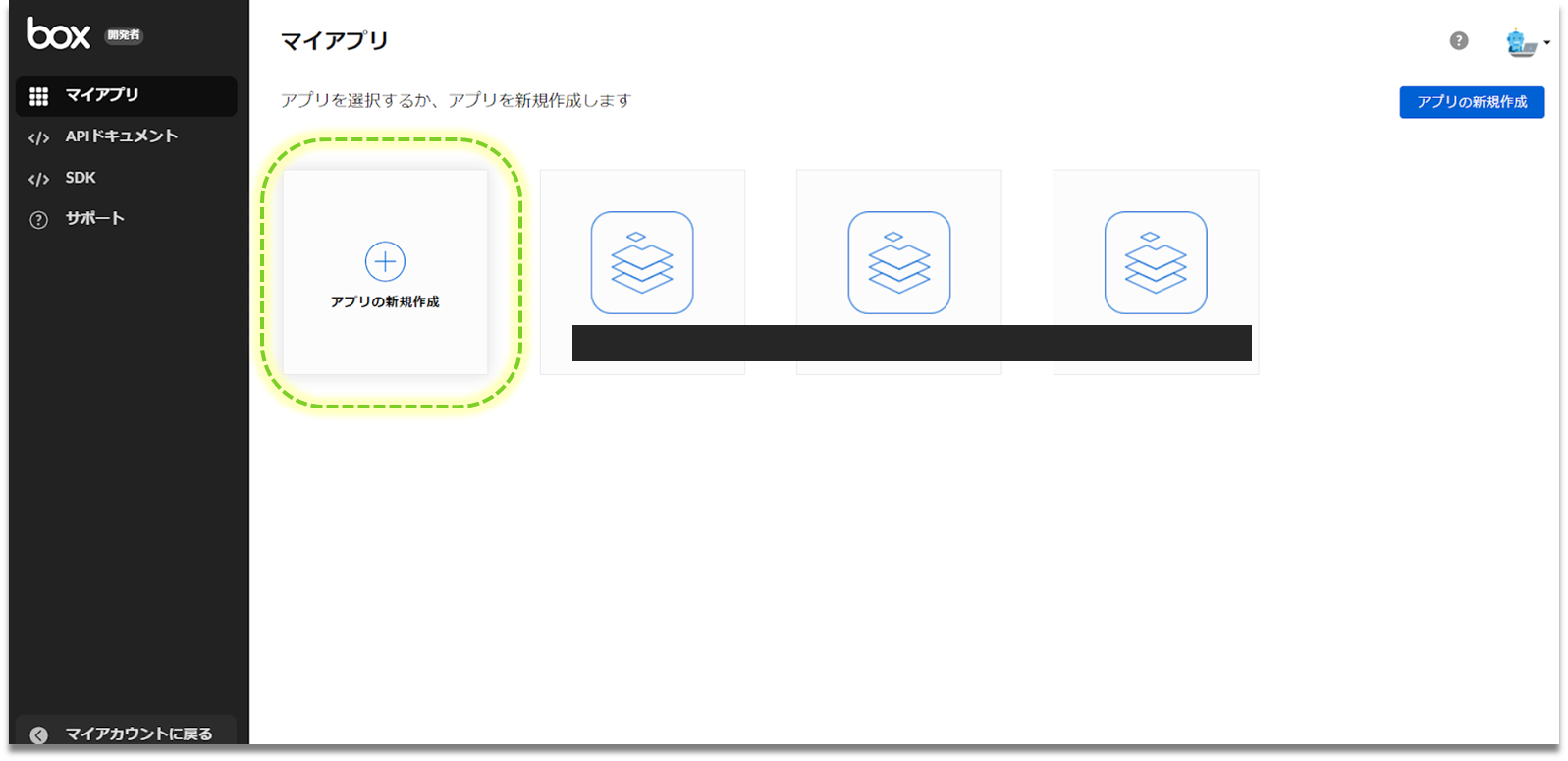 「マイアプリ」で「アプリの新規作成」を選択します。
